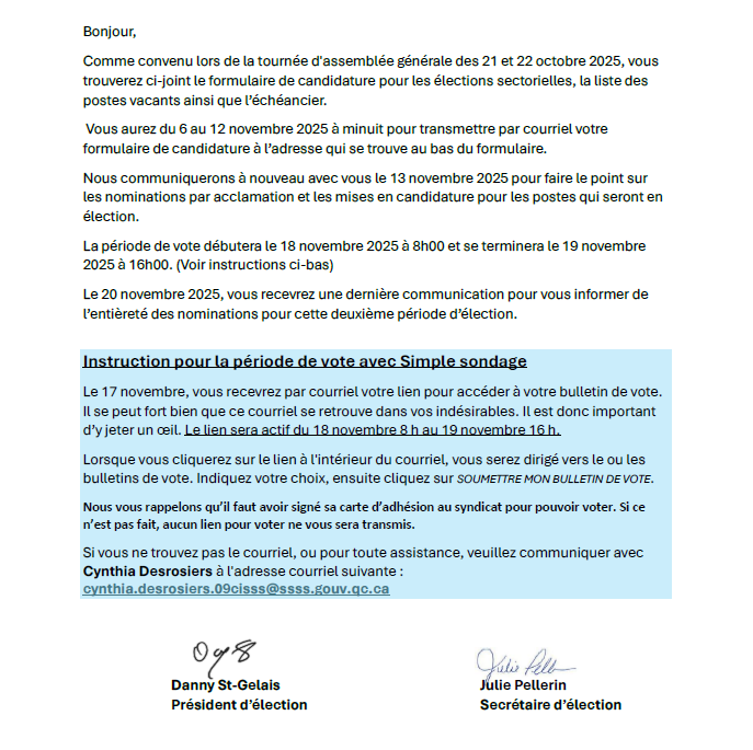 Formulaires de candidature élections sectorielles 2025