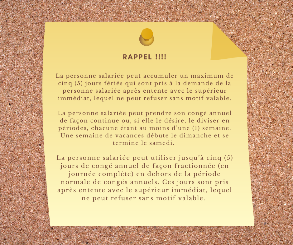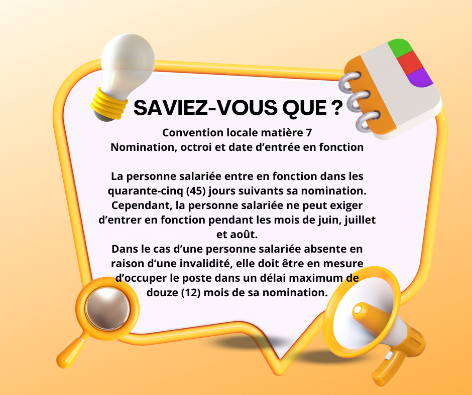 Saviez-vous que ? Dates à retenir pour l’année 2026 Rappel – Banque maximale de fériés et fractionnement de vacances Prime d’ancienneté La promotion La probation Le délai d’entrée en fonction